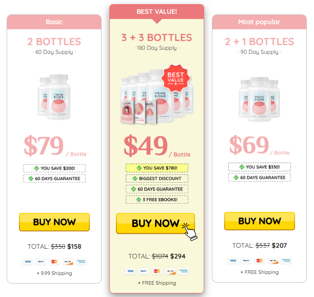PrimeBiome is available exclusively on the Official Website with package options offering significant discounts and additional benefits. These are the current selling prices: